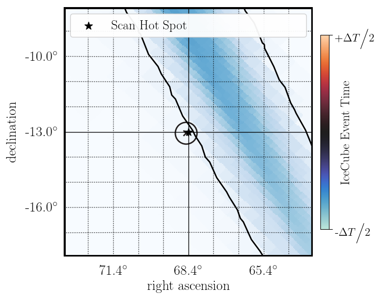 - dt = Time offset (sec) of track event with respect to GW event merger time (t_nu - t_merger).