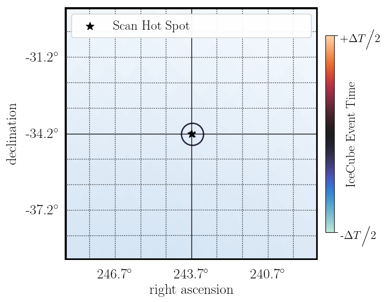 Most probable direction: | RA: 243.72 deg, decl.: -34.23 deg |