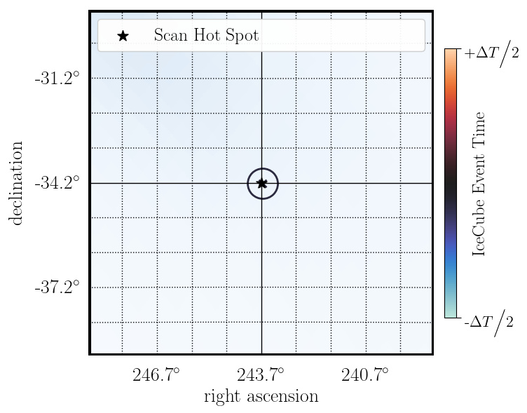 Most probable direction: | RA: 243.72 deg, decl.: -34.23 deg |