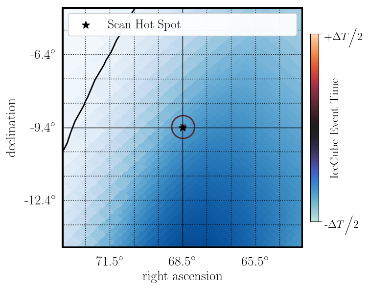 - dt = Time offset (sec) of track event with respect to GW event merger time (t_nu - t_merger).