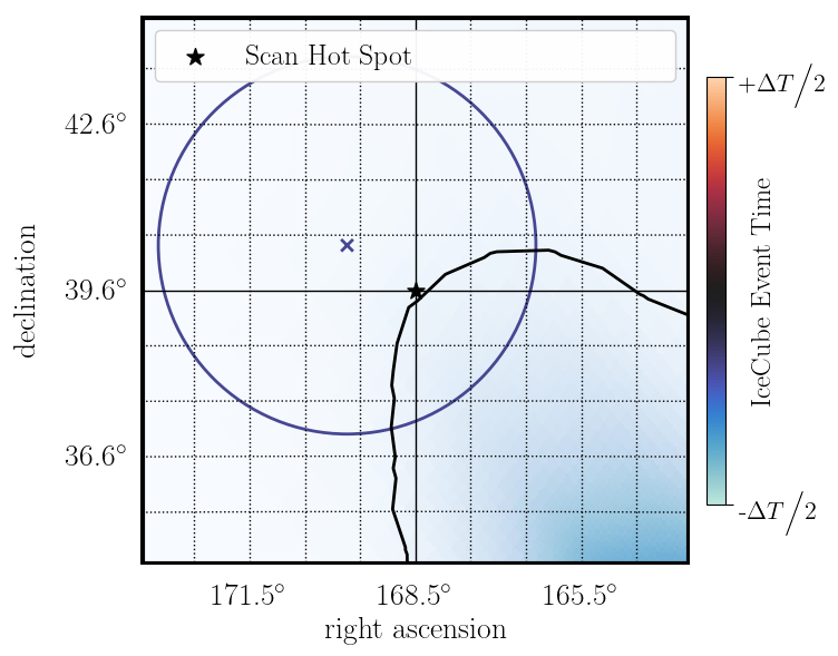 - dt = Time offset (sec) of track event with respect to GW event merger time (t_nu - t_merger).